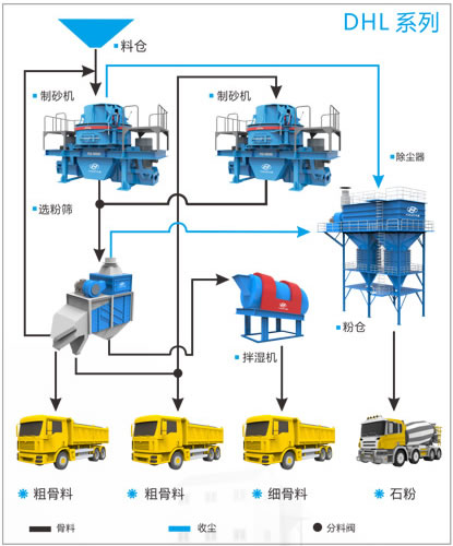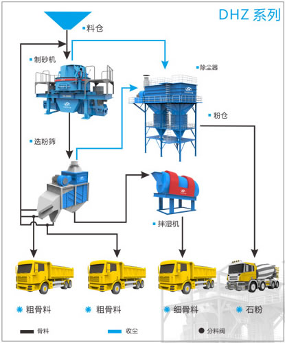 DHZ系列平面站式制砂生產(chǎn)線(xiàn),結(jié)構(gòu)簡(jiǎn)單,可靠耐用,生產(chǎn)效率高。生產(chǎn)的精品機(jī)制砂粒型圓整、顆粒級(jí)配連續(xù)、細(xì)度模數(shù)可調(diào),該生產(chǎn)線(xiàn)采用多點(diǎn)集中除塵,有效控制粉塵排放。