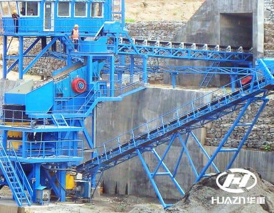 該生產(chǎn)線的破碎過程:顎式破碎機中進(jìn)行簡單的粗碎,然后進(jìn)入圓錐破碎機中進(jìn)行細(xì)碎,最后進(jìn)入振動篩進(jìn)行篩分。合格的石料經(jīng)由皮帶輸送機進(jìn)入洗選后進(jìn)入成品區(qū),不合格的石料再次進(jìn)入圓錐破碎機進(jìn)行破碎,從而形成閉路循環(huán),保證石料的質(zhì)量規(guī)格。最后破碎物料顆粒三種規(guī)格 0-5 5-16 16-31.5。