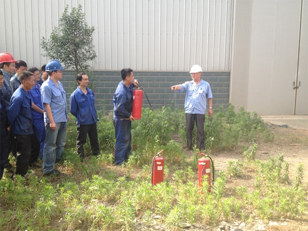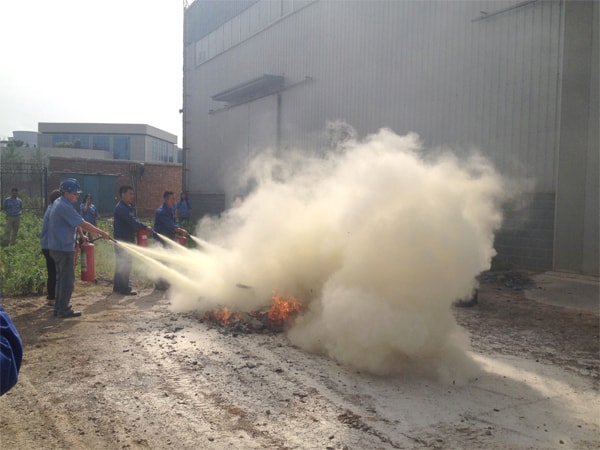 參加演習(xí)人員有各部門、各車間新入職員工和各車間班組長及安全員,機加車間主任張自力,金構(gòu)車間主任鄧興軍、曹永祿,液電車間主任王海濤、張孟喜,制造部長張彥寶等領(lǐng)導(dǎo)都帶頭參加滅火演習(xí)。在滅火演練前,公司安全員吳建國首先把怎樣使用滅火器材和滅火注意事項進行講解:一是在日常消防工作中一定要把預(yù)防火災(zāi)放在首位,積極貫徹落實各項防火措施,防患與未然,最大限度減少火災(zāi);二是一旦發(fā)生火災(zāi)要及時有效予以撲滅創(chuàng)造條件,減少火災(zāi)危害和最大限度減少火災(zāi)所造成的人身傷亡和財產(chǎn)損失;三是正確使用滅火器材,撲滅火災(zāi)時,把滅火器上下顛倒幾次,離火點3-4米時,拔出保險銷,一手握噴嘴,一手將壓把壓下,干粉向火的根部噴出,滅火要徹底迅速,不要遺留殘火,以防復(fù)燃。