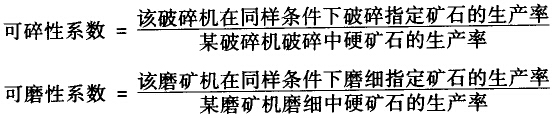 愈硬的礦石愈難破碎及磨碎,為了能將礦石力學(xué)強(qiáng)度對(duì)破碎及磨碎的影響進(jìn)行量化確定,在工程計(jì)算上,提出用可碎性系數(shù)及可磨性系數(shù)來表征這種影響。