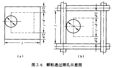 松散物料的篩分過程,可以看作由兩個階段組成:(1)小于篩孔尺寸的顆粒通過篩上顆粒所形成的物料層到達篩面;(2)小于篩孔尺寸的顆粒透過篩孔。