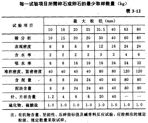 每一單項試驗的試祥應(yīng)不少于表3-12所規(guī)定的最小取樣數(shù)量。須作兒項試驗時,如確能保證試樣經(jīng)一項試驗后不致影響另一項的試驗結(jié)果,可用同一批試樣進行幾項不同的試驗。