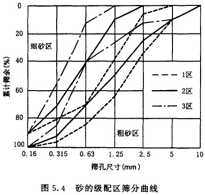 一般認(rèn)為,處于級(jí)配曲線2區(qū)的砂,其粗細(xì)適中,級(jí)配較好。1區(qū)的砂含粗砂顆粒較多,屬于隨砂,其保水性差。3區(qū)的砂細(xì)砂顆粒多,用其配制的混凝土粘聚性大,保水性能好,但干縮性大,容易產(chǎn)生微裂縫。