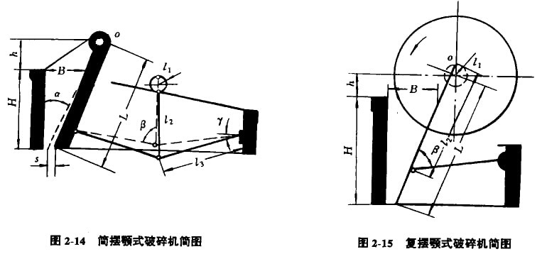復(fù)擺顎式破碎機(jī)動(dòng)顎懸掛高度按式(2-36)計(jì)算h≤0.1L