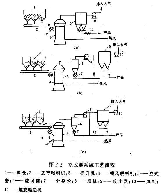 (3)工藝流程 立式磨扮磨系統(tǒng)的典型工藝流程參見圖2-2。