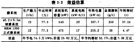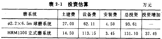 由表2-2可看出,立式磨投產(chǎn)后約一年的時間即可收回比球磨高出的投資。