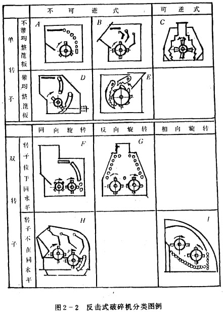 反擊式破碎順從結(jié)構(gòu)特征,可分為單轉(zhuǎn)子和雙轉(zhuǎn)子兩種類型,其詳細分類見圖2-2。