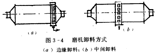 中心卸料式磨機可分為溢流型(不帶卸料篦板)磨機,如圖3-3b所示,格子型(帶卸料籃板)磨機,如圖3-3c所示。另外有邊緣卸料式磨機。如圖3-4a所示,磨細的物料通過卸料篦板,被輻射狀布置的揚料板帶起,然后經(jīng)筒體出料孔卸出。中間卸料式磨機,如圖3-4b所示,這種磨機是兩端進料,中間卸料,在筒體中部的周壁上開孔以卸料,相當(dāng)于兩臺邊緣卸料磨機的合成。