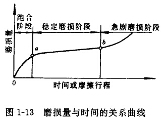 b點(diǎn)以后磨損劇烈增大,配合精度喪失,溫度升高,出現(xiàn)振動(dòng)和噪聲,最后導(dǎo)致零件失效。