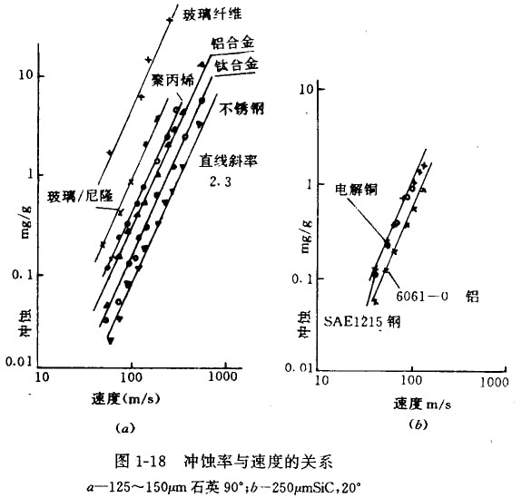 圖1-18為8種材料沖蝕率與速度的關(guān)系曲線。