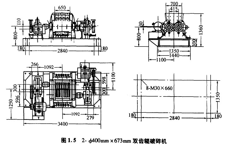 圖1.5是一種用于破碎粘土的雙齒輥破碎機(jī),具有如下特點(diǎn):