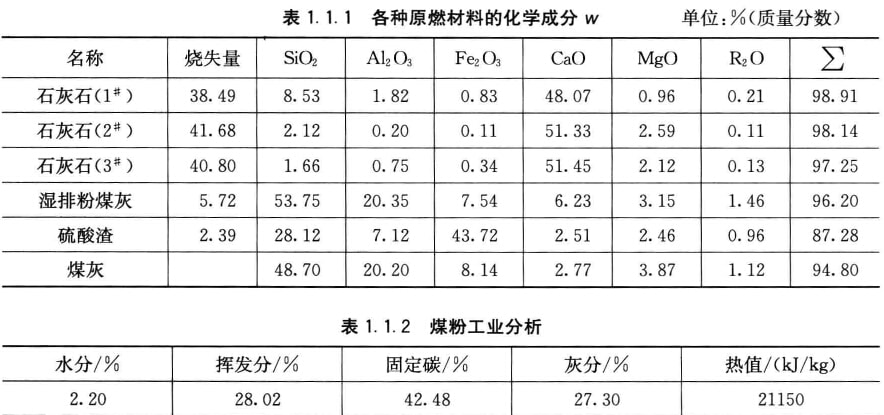 生產(chǎn)低堿水泥的關(guān)鍵是有效控制原燃材料中的R2O值。該公司主要原料堿含量的控制范圍如下:鈣質(zhì)原料中R2O≤0.2%,硅質(zhì)原料中R2O≤1.5%,鐵質(zhì)校正原料中R2O≤1.0%。原燃材料化學(xué)成分見表1.1.1,煤粉工業(yè)分析見表1.1.2。