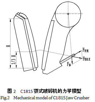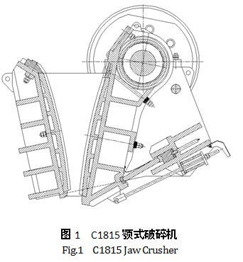 顎式破碎機(jī)一般用于粗碎各種礦石或巖石,特別是大型的礦山,首先就會選擇大型顎式破碎機(jī)。由于顎式破碎機(jī)具有結(jié)構(gòu)簡單,工 作可靠,制造容易,維修方便等優(yōu)點(diǎn)[1],得到廣泛的應(yīng)用。在國內(nèi)開發(fā)制造大型顎式破碎機(jī)的廠家也寥寥無幾,在行業(yè)內(nèi)公認(rèn)是比 較難做的,所以很多廠家想做但又不敢涉足。2010年我公司開發(fā)C1815大型顎式破碎機(jī),也是當(dāng)時(shí)國內(nèi)最大的顎式破碎機(jī)。經(jīng)過研發(fā)制 造、應(yīng)用驗(yàn)證,實(shí)現(xiàn)了節(jié)能降耗的目的,顯著降低了用戶使用成本,同時(shí),也為下一步開發(fā)更大型號顎式破碎機(jī)奠定了基礎(chǔ)。