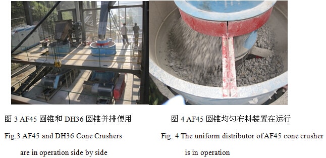 進入粉礦倉的原料為10mm以下。改造后兩臺圓錐并排使用如圖3。