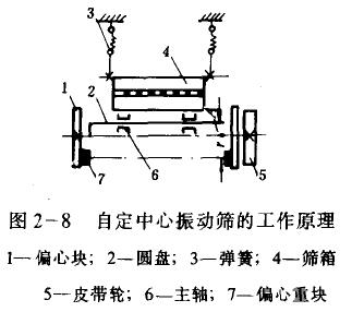 當(dāng)主袖旋轉(zhuǎn)時篩框?qū)⒆鲌A運動,這是由于兩個回轉(zhuǎn)體相互作用的結(jié)果,一個回轉(zhuǎn)體是彈簧懸接著的篩框,另一個回轉(zhuǎn)體是固定在主軸上的不平衡重塊。篩框繞主軸作圓運動,而上軸的軸線在空間中不移動,故把這種篩子稱之為自定中心振動篩。