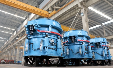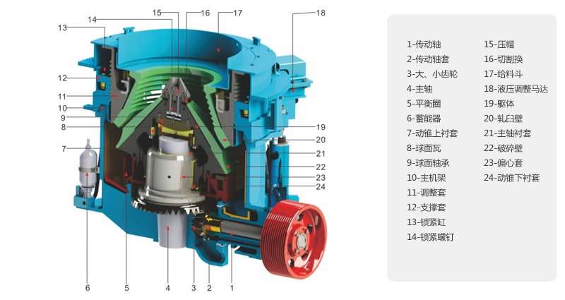 液壓馬達驅(qū)動調(diào)整套(定錐襯板),可對排料口進行準確調(diào)整,使給料穩(wěn)定,襯板利用率高、產(chǎn)品粒型好。液壓馬達還可使調(diào)整套和定錐襯板全部轉(zhuǎn)出支撐套,以便更換定錐襯板和動錐襯板,從而大大簡化了襯板更換的工作量。